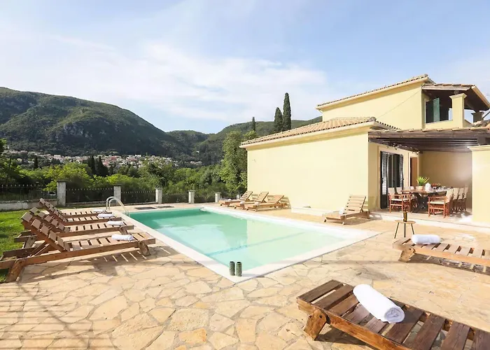 Situat la 3.8 km de Corfu Donkey Rescue, Elite Villa Ena Áno Korakiána, invită oaspeții să se relaxeze pe o terasă.